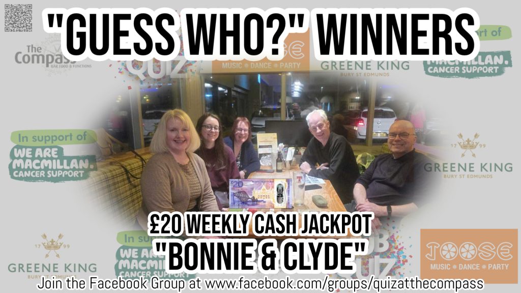 Although “Team Mac”, “The Stoaters” and “Universally Challenged” had all got the answer right at the same time, it was “Bonnie & Clyde” who were drawn out as the lucky winners of the £20 prize for the round.