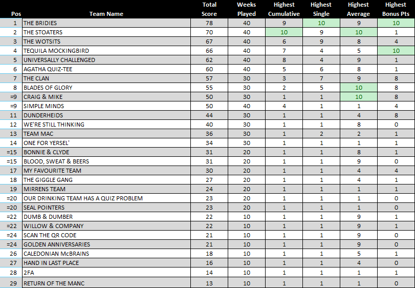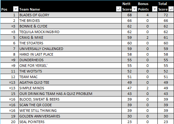 Most of our teams scored pretty well in this round, but none more so than “Blades of Glory”, who acheived the maximum 22 points, having got a perfect score with their Joker card!