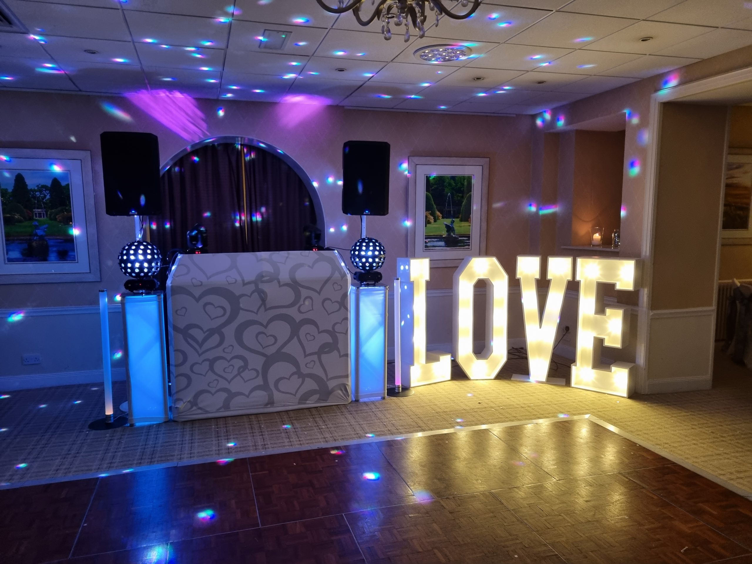 Many couples spend a long time deliberating on whether to hire a band, a singer, or a disco, or maybe even a combination, plus something else thrown in to the mix – then there’s the optional (but very popular) added extras like illuminated ‘LOVE’ letters, LED dance floors, photo booths and so on.