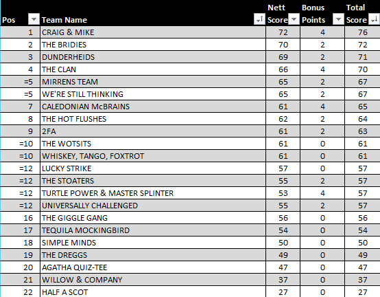 Nobody scored full marks, but there were a number of Jokers played, and some high scores as a result. “Mirren’s Team” came out on top in this round with a score of 16 points!