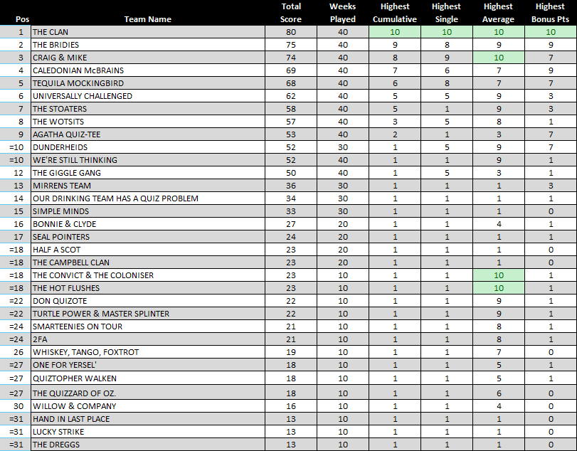 In the final ‘Guess Who?’ round, it took FOUR clues for any of the teams to guess correctly – and then ELEVEN teams all got it right on the same clue!