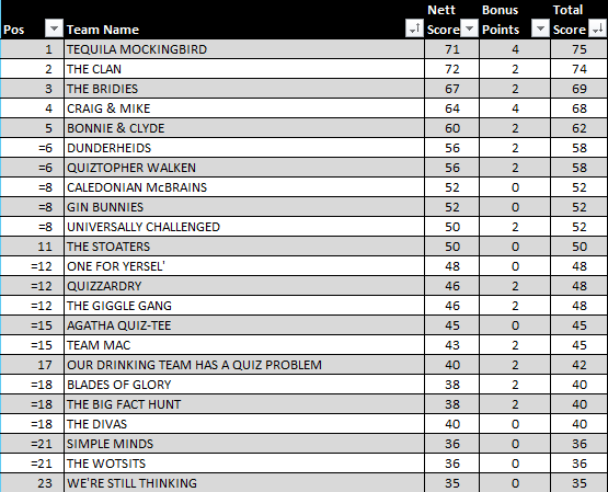 There were some quite testing questions in this round, and “Quizzardry” came out on top, scoring 16 points thanks to their Joker.